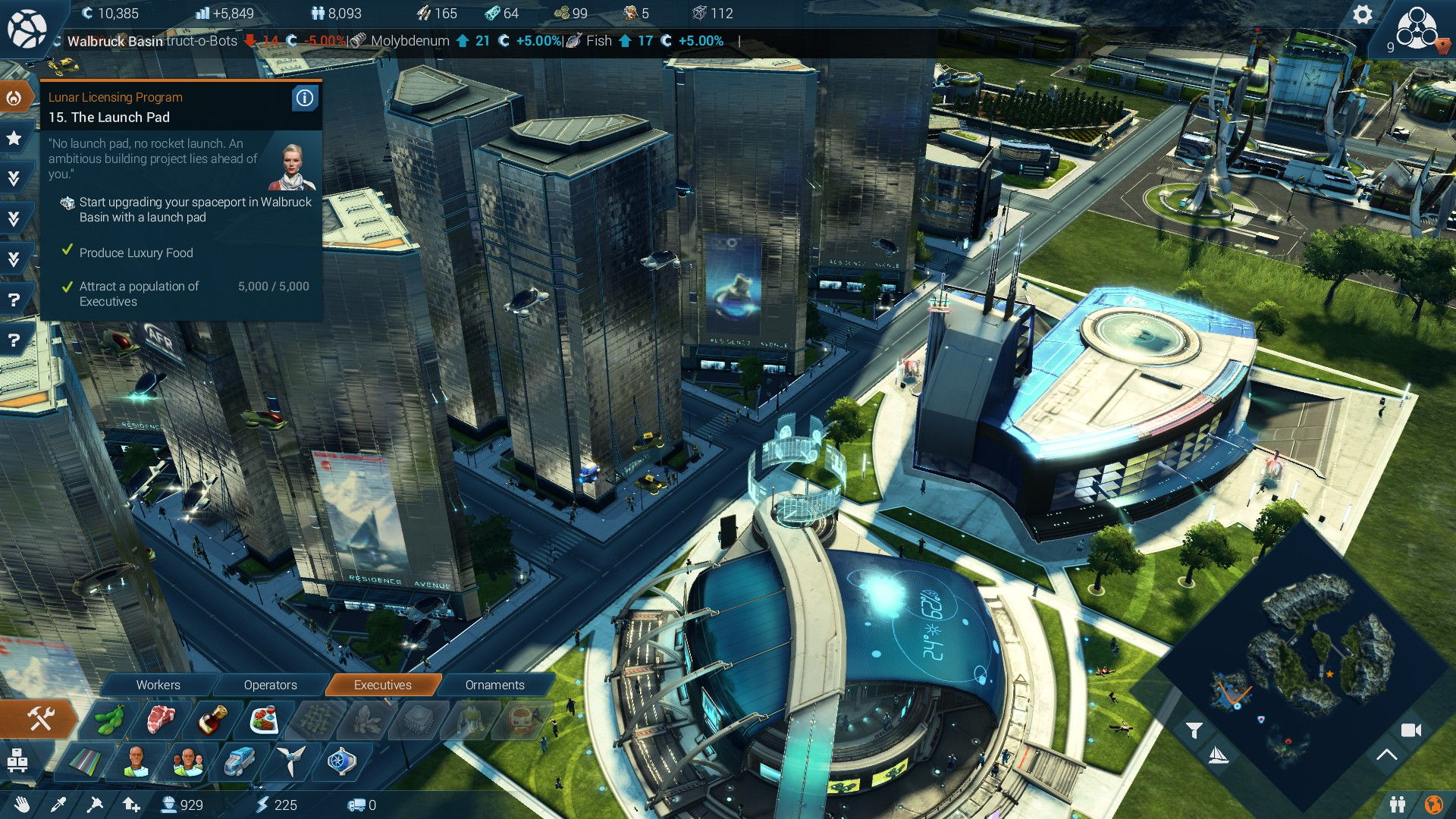 Si Anno 2205 te recuerda a la legendaria saga de SimCity o al reciente Cities: Skylines, es porque todos comparten unos cuantos denominadores comunes en su jugabilidad. Las exigencias de la población van aumentando a medida que prospera nuestra gestión, y ni siquiera las más lujosas commodities parecen satisfacer definitivamente a estos insaciables individuos. ¿Tienen agua? Ahora quieren informarse a través de medios de comunicación. ¿Tienen información? Ahora exigen seguridad. ¿Tienen policías patrullando las calles? Bueno, ahora anhelan encontrarse en centros comunitarios recreativos. Por supuesto, nuestro abanico de construcciones y servicios se va ampliando en paralelo a estas demandas -¡menos mal, porque de lo contrario esta sociedad futurística sería ingobernable!