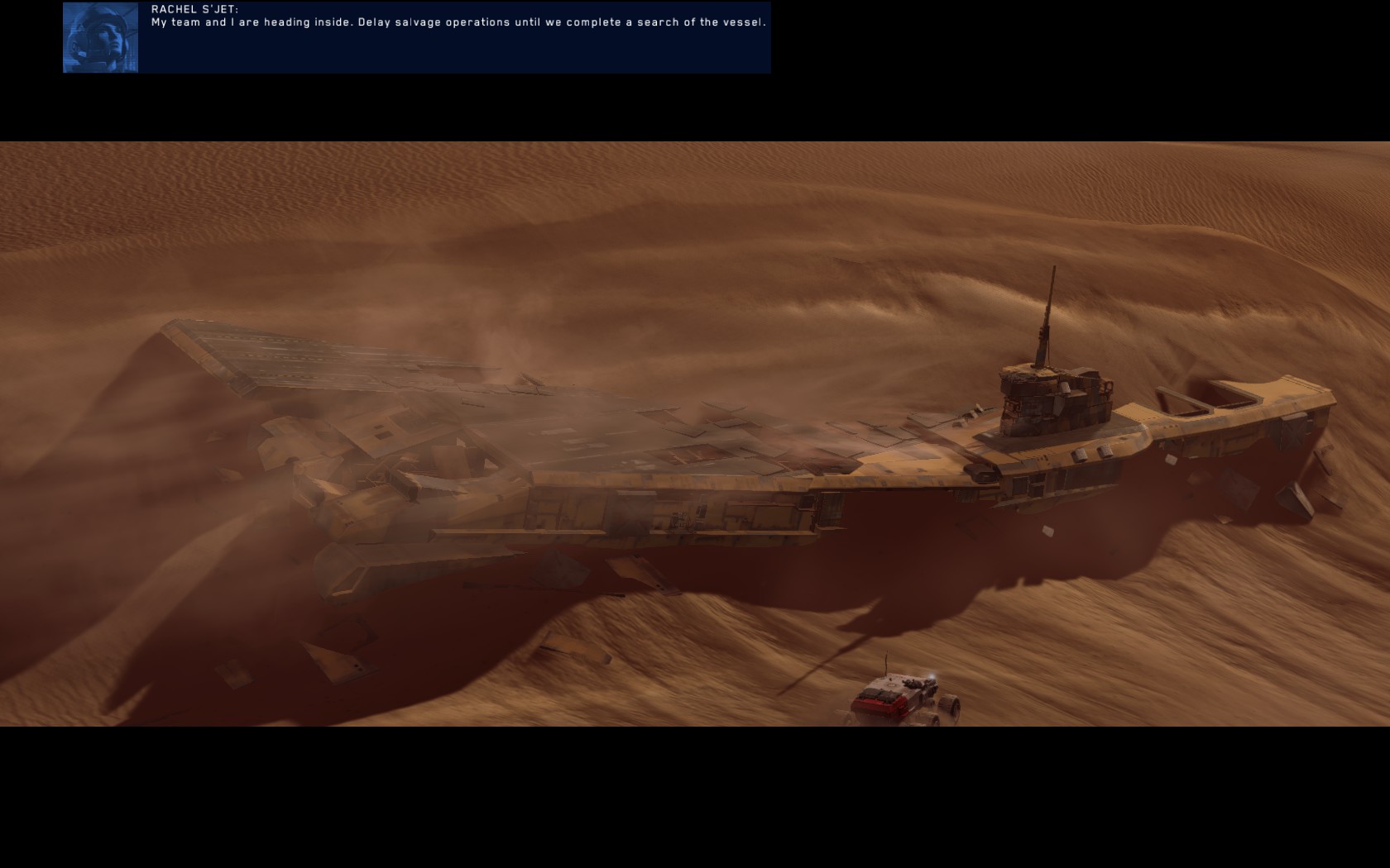 La historia en esta iteración de Homeworld es simple, pero funcional. Se encuentra una anomalía en los desiertos de Kharak, y Rachel S’Jet, la protagonista de turno, es la encargada de encontrarla y descubrir para qué sirve.