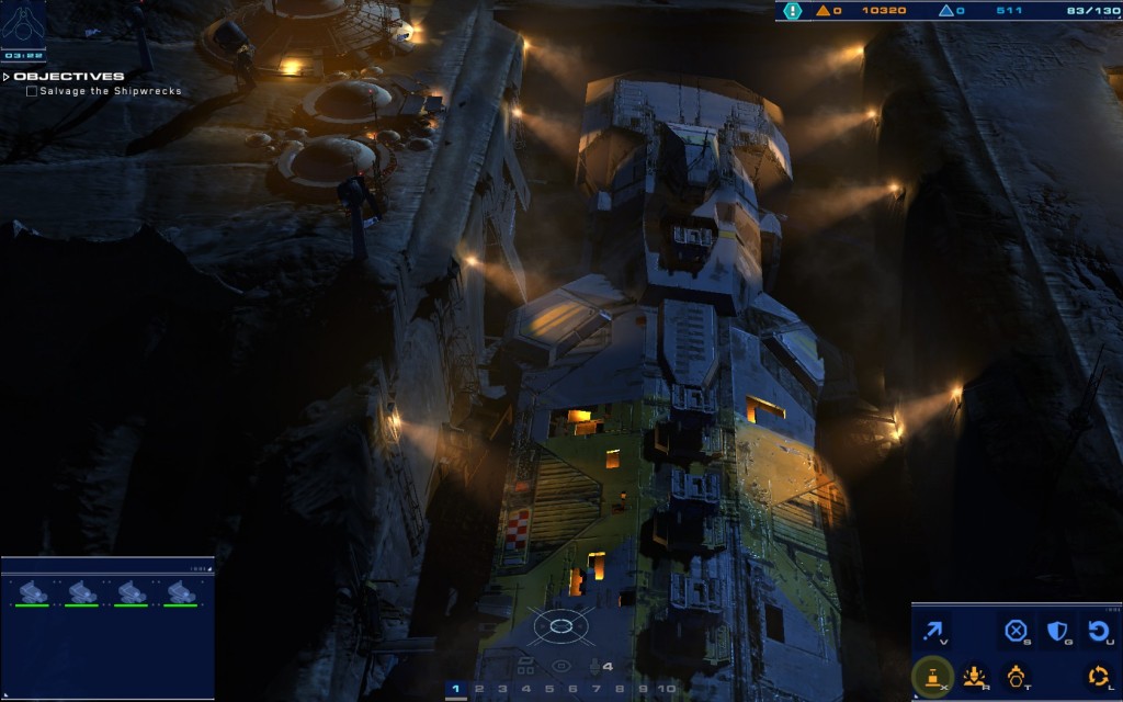 Nuestra base es un portaaviones terrestre gigante, que al igual que en los juegos anteriores es sumamente lenta y difícil de maniobrar, por lo que requiere de una flota de naves de soporte para cuidarla.