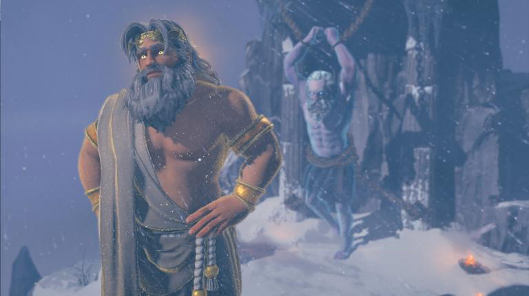 El punto más flojo de este título, en mi opinión, es el modo en que se eligió contar esta odisea. Zeus le pide ayuda al titán Prometeo, (al cual irónicamente castigó encadenándolo) para salvar la tierra de los Dioses, a cambio de su libertad. Para ello Prometeo narra la historia de Fenyx. El tema es que todo esto tiene muy poco de épico y serio: la empresa decidió abordar la epopeya desde un punto humorístico. Zeus y Prometeo comentan todo hito importante de la historia en forma de relatores omniscientes, mofándose -especialmente Zeus- de todos los típicos acontecimientos de las tragedias griegas. Si bien es un intento más que loable para alejarse completamente de sus propios títulos y de la franquicia del calvo otrora enojado o de la narrativa épica y sentimental de Breath of the Wild, sinceramente no me pareció un guión logrado. Todas las acciones graciosas de Fenyx son mucho más satisfactorias y empáticas, que la narración predecible que termina volviéndose molesta. Además, Hermes realiza el rol de comic relief, y tampoco es la gran cosa. El casting de voces en inglés ni siquiera me gustó, especialmente el de Zeus, y algo que tenía que diferenciar para bien al título me generó un efecto contrario. No niego algunas risas ocasionales, pero fueron las menos.