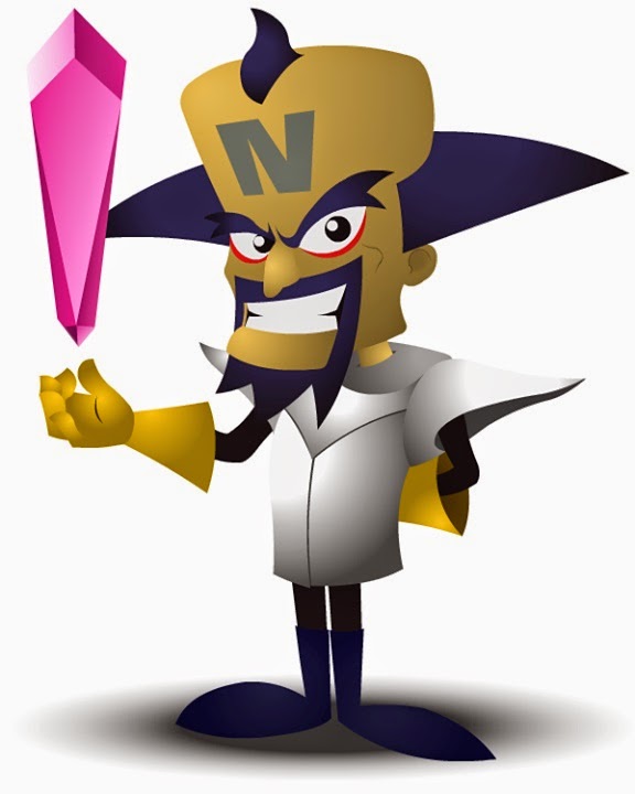 Uno de los científicos locos que aspira a dominar el mundo con una N gigante en la cabeza es Neo Cortez, de Crash Bandicoot. Muchas veces lo vemos acompañado de una entidad malvada en forma de máscara llamada “Uka Uka”.