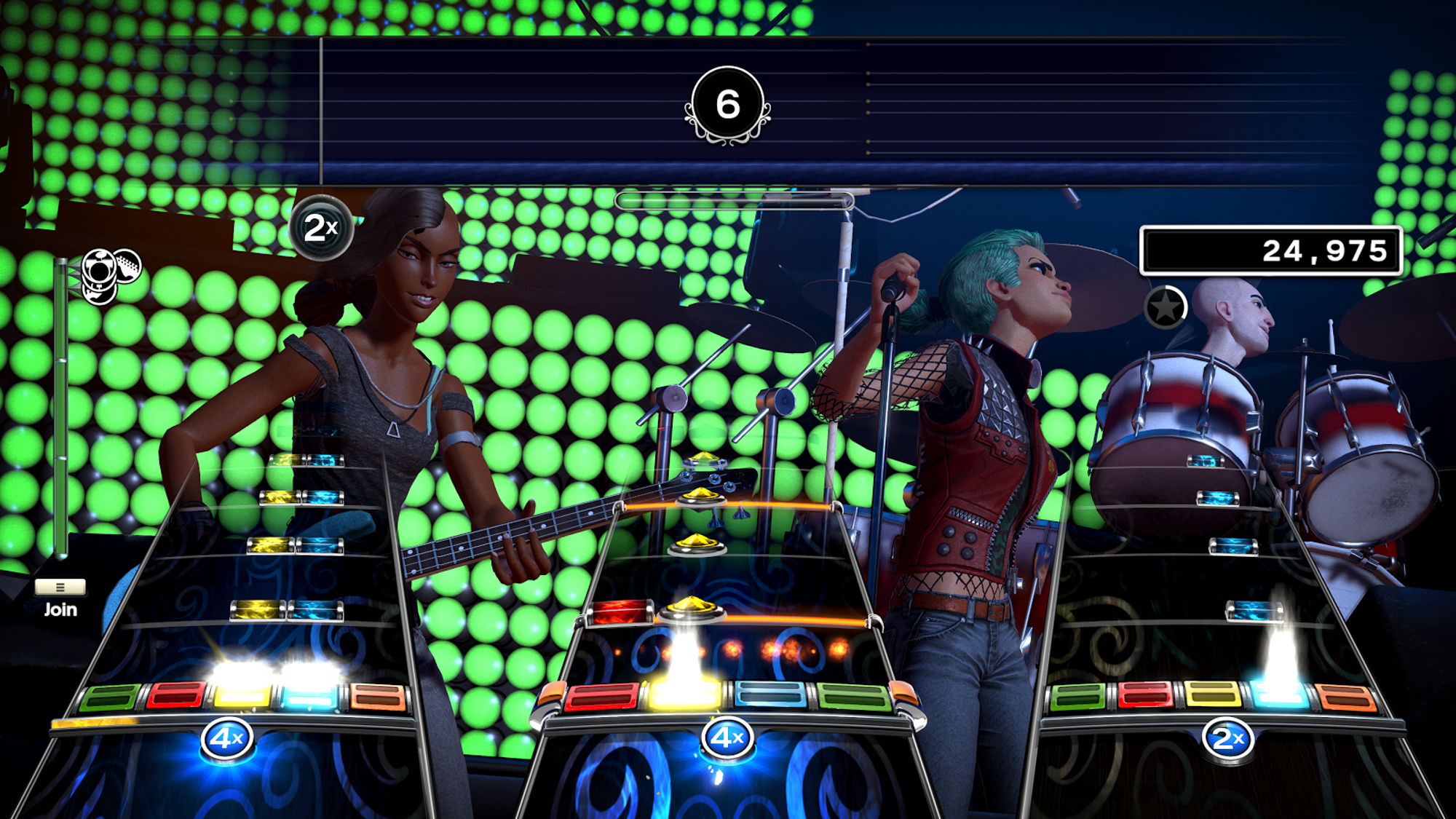 La jugabilidad es la misma de siempre, las notas se encuentran mapeadas a los botones de los instrumentos, y una representación visual de estas desciende desde la parte superior de la pantalla, debiendo tocarlas en el momento que cruzan la barra en la parte inferior.
