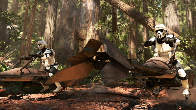 Según el modo de juego y mapa, podemos además comandar vehículos terrestres y aéreos, incluyendo AT-STs, Snowspeeders y Speeder Bikes.