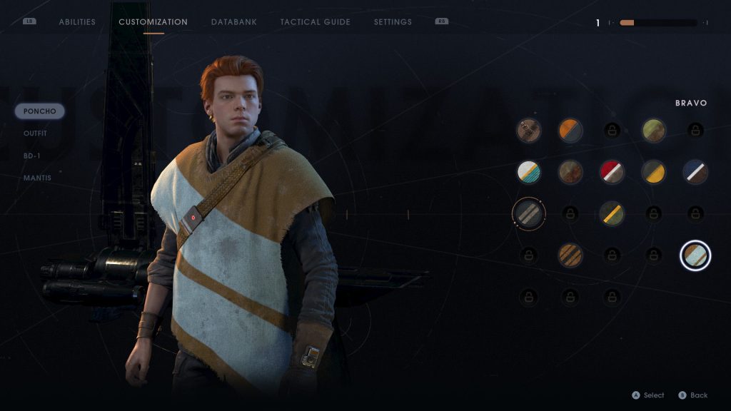 Ah, y ponchos espaciales: Cal Kestis es una especie de Mercedes Sosa mágica, en un frenesí interplanetario por conseguir todos los ponchos de la galaxia.