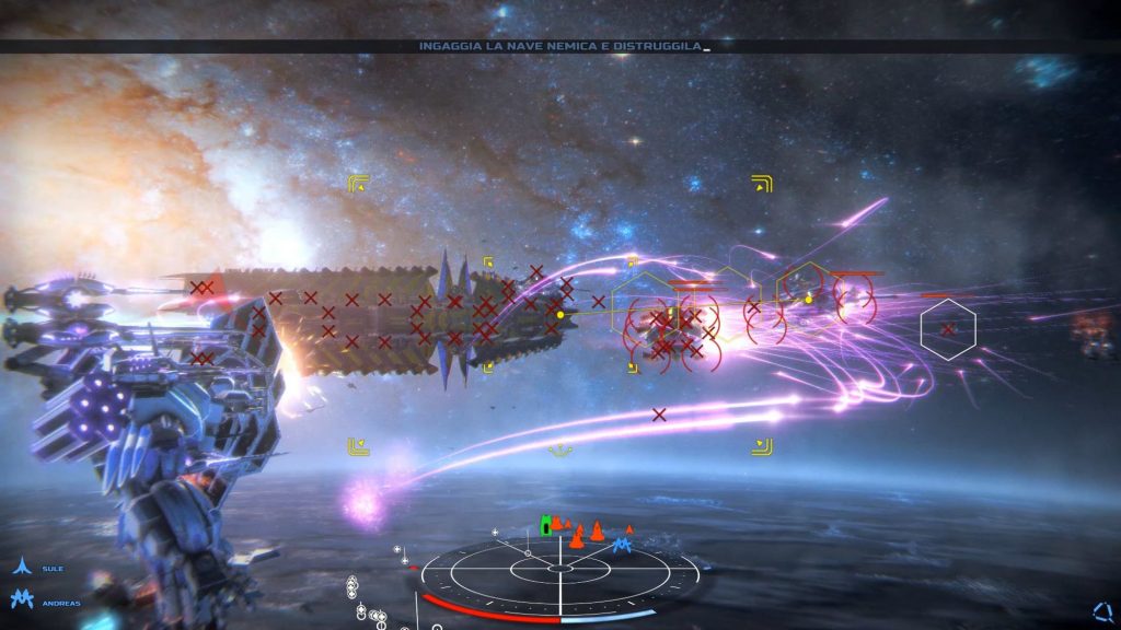 Una vez en la misión, tendremos distintos tipos de objetivos para completar. La gran mayoría del tiempo estaremos destruyendo naves enemigas, con la típica variedad de navíos espaciales que uno esperaría de cualquier juego del estilo, presentadas en diversos tamaños y colores. Nuestro arsenal cuenta con munición pesada, rápida o misiles. Las tres variantes pueden ser asignadas, dinámicamente durante el gameplay, a los gatillos.